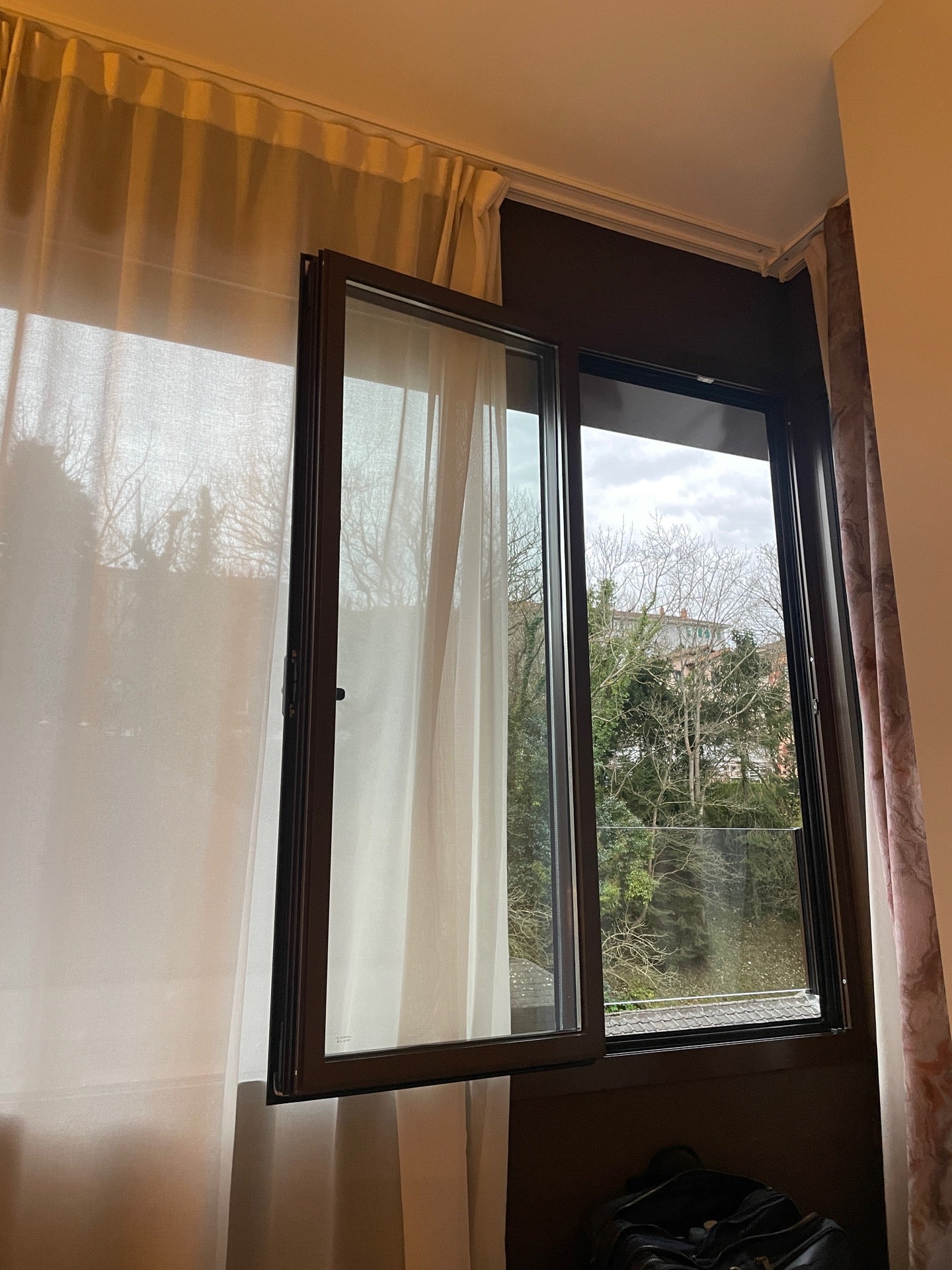 Overly crowded space where we had too shut the bathroom door to open the next door. The hotel makes money I guess from the gay-friendly trade